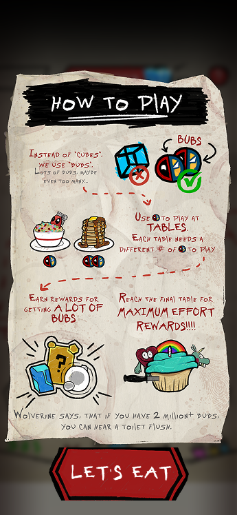 What is it? Deadpool's Diner took "High risk, high reward" to a level we hadn't done in SNAP before. The mode is very akin to playing poker at a casino, where you come in with your Bubs currency and choose a table based on how much stake you want to put in. There were low-stake tables where you could bet 10 Bubs and HIGH stakes where you could bet 1 Billion Bubs!