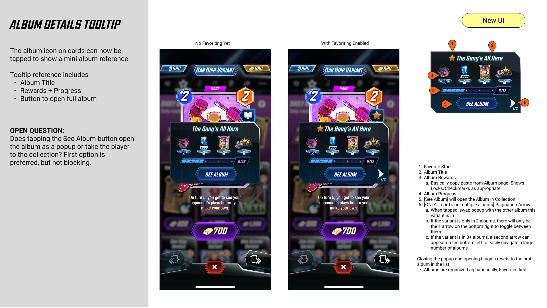 I joined the Marvel SNAP team the week we announced Beta in the Spring of 2022. Since then, I have touched just about every screen in the game. Below is a summary of my contributions to the Marvel SNAP mobile + PC game. The best way to see my work is to download the game on iOS/Android/Steam!